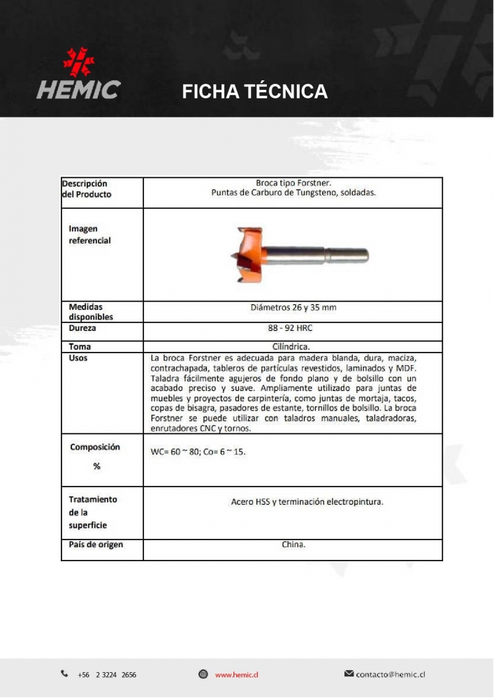 BROCA FORSTNER HEMIC P/BISAGRA 26MM