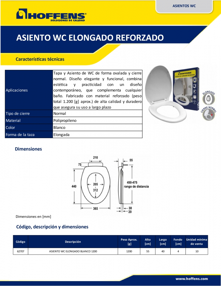 ASIENTO WC ELONGADO REFORZADO BCO