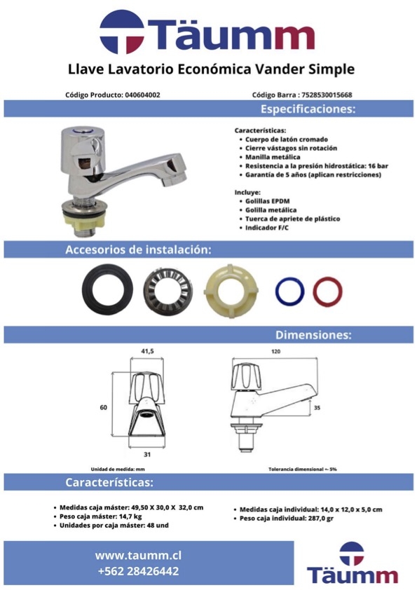 LLAVE LAVATORIO ECONOMICA VANDER