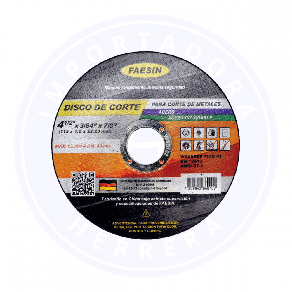 DISCO DE CORTE A. INOX 4 1/2 X 1.0MM FAESIN