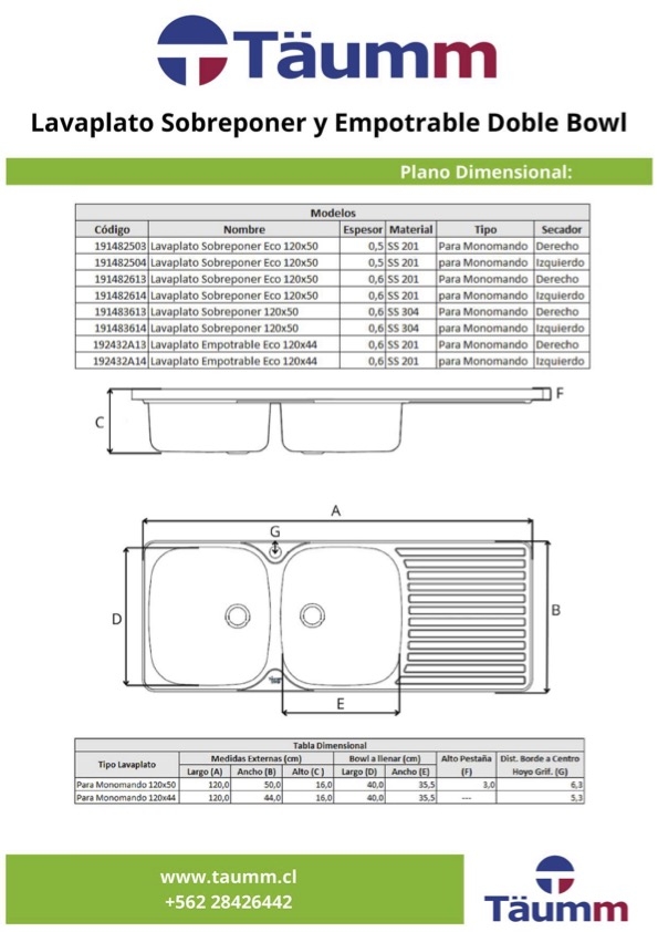 LPLATO 120X50 SOB ECO P/MM SECIZQ DESAG