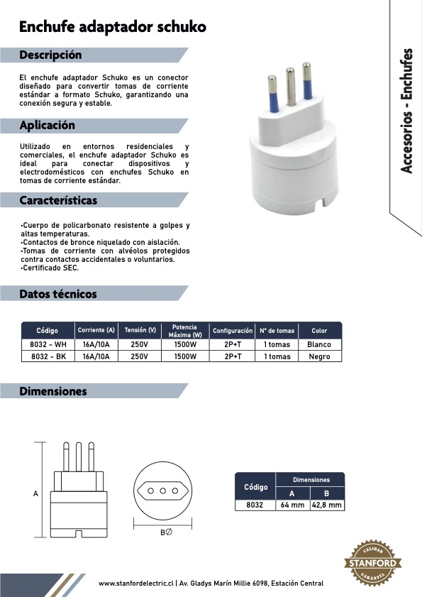 ENCHUFE ADAPT SCHUKO 16A/10A BCO 8032-WH STANFORD